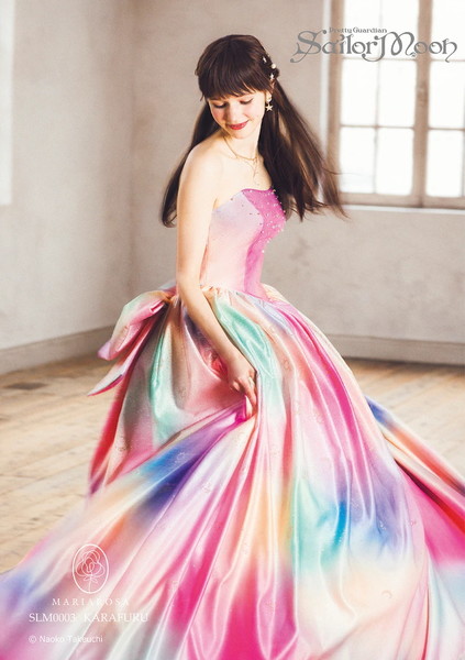 Wedding dress rental service Mariarosa is putting up Sailor Moon-themed wedding dress and tuxedos for rent in dress shops across Japan starting from August. The dress designs were personally supervised by Sailor Moon creator Naoko Takeuchi herself.