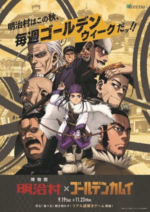 The Meiji-Mura museum's website announced on Thursday that it will hold a collaboration event with the historical-themed anime series Golden Kamuy from September 19 to November 23. During this period, the anime will be presented at the museum in multiple forms, including a puzzle-solving event, a stamp rally, a shooting game challenge, and various eateries which will sell Golden Kamuy-themed food.