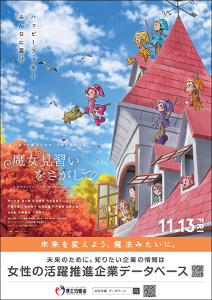 The Looking for Magical DoReMi (Majo Minarai o Sagashite) film released a tie-in poster on Friday promoting a government job searching database aimed at women. In accordance with both the film's themes and the government's goal of promoting women in the workplace, the tagline for the poster is "Change the future, like magic."
