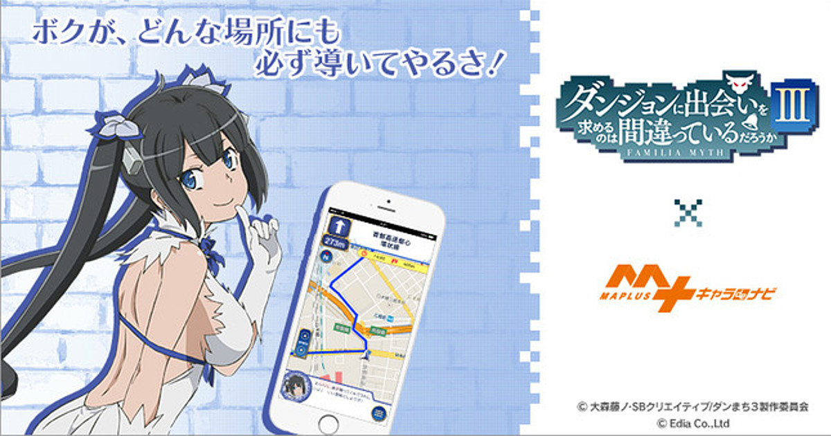 徒歩・カーナビアプリ『MAPLUSキャラdeナビ』に「ダンジョンに出会いを求めるのは間違っているだろうかⅢ」より「ヘスティア(CV.#水瀬いのり)」が登場!