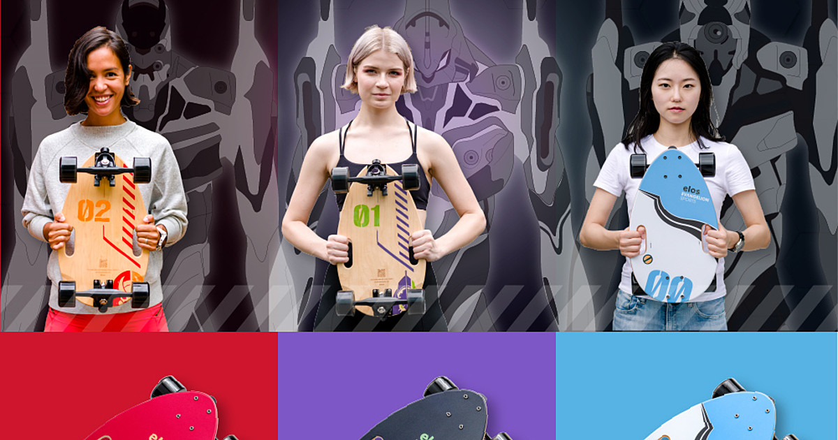 Skateboard manufacturer Elos opened preorders on Friday for its Evangelion Sports collaboration skateboards. The boards come in three designs: Eva 01, Eva 02, and Rei.