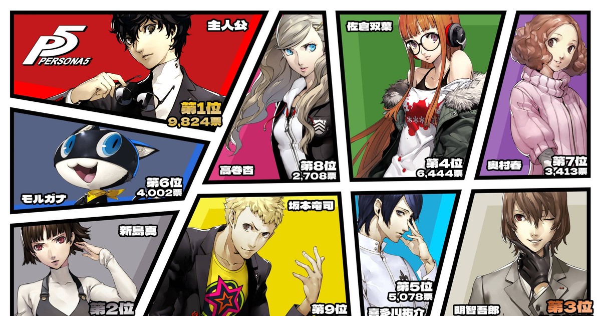 Last Friday, the Japanese PlayStation Twitter account announced the results of a Persona 5 popularity poll that it held on September 15.