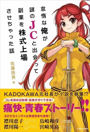 Former Kadokawa president Tatsuo Satо̄ flexed his storytelling muscles with an intriguing new novel: Taida na Ore ga Nazo no JC to Deatte Fukugyо̄ wo Kabushiki Jо̄jо̄ Sasechatta Hanashi ("I'm a Lazy Bum, But After I Met a Mysterious Middle School Girl, My Side Business Got On the Stock Exchange"). As the title so aptly describes, it's about the protagonists starting a publishing business after encountering a middle school girl.
