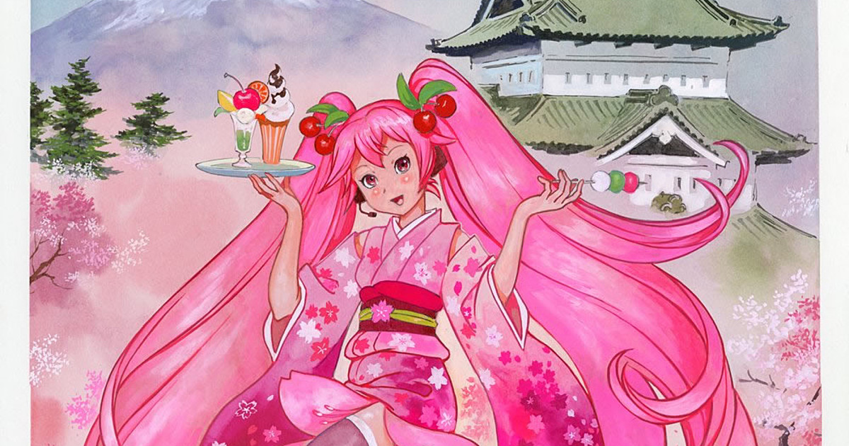The Hatsune Miku Official Blog announced on March 12 that Mobile Suit Gundam character designer and Mobile Suit Gundam: The Origin creator Yoshikazu Yasuhiko had drawn Vocaloid idol Hatsune Miku as Sakura Miku for the HiroHako Spring Sightseeing Campaign. The piece depicts Sakura Miku carrying sweets by Hirosaki Castle in Hirosaki, Aomori Prefecture.