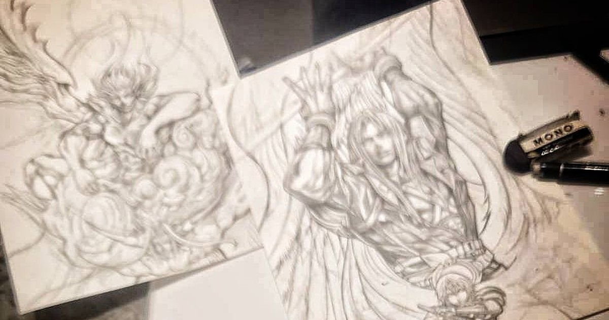 Nomura's comments come days after Wizards of the Coast, the producers of Magic: The Gathering, held its Magic: The Gathering Final Fantasy Debut Showcase at PAX East on May 10. Although the artists comments regarding the card designs are cryptic, when looking at Nomura's drafts for the cards we see a small figure standing in front of the Final Fantasy VII antagonist in the art for Sephiroth, Fabled SOLDIER. And while blurry, we see a similar Sephiroth, Fabled SOLDIER in the same position on Sephiroth, One-Winged Angel.