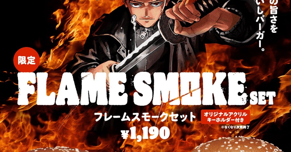 Burger King Japan announced it is partnering with popular manga series Kagurabachi for the limited time “Flame Smoke” burger sets on Thursday. Each of the three hamburger sets comes with an original Kagurabachi acrylic keychain at Japanese Burger King locations starting on Friday.