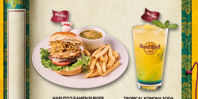 Hard Rock Café Japan announced a new collaboration with popular anime series Naruto on January 9, and topping the menu are Naruto's Ramen Burger and Tropical Konoha Soda: