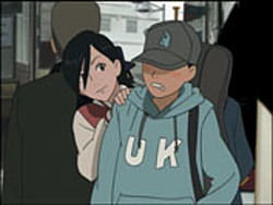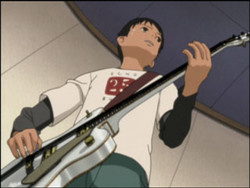 Greg: Well, I met Osamu Kobayashi when I was here two years ago. He's the director of Beck, and we surprisingly have a lot of the same musical influences. He's a big Nirvana fan, a big Ramones fan, and it shows all over the show. The coolest thing about the show is that his fascination and Sakuichi's fascination with American and British rock music totally shows even in the shirts, like when Koyuki wears a Pixies shirt, and it says Pixis. Ryusuke wears a Red Hot Chili Poppers shirt. There're all these great send-outs of American rock bands. A lot of the bands I love are paid tribute to in the show, especially the Ramones and Nirvana. I'm a music geek, and to say what my favorite music bands are, I would have such a hard time. My newest obsession though, is Lauryn Hill. I'm enthralled by the story of and the voice of Miss Hill. Those are my three right now. The Ramones never change, Nirvana never changes, but the new flavor of the month is Miss Hill.