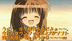 "Ugu! It's me, Ayu Tsukimiya! I think I might start destroying downloaded files and P2P software now..." |