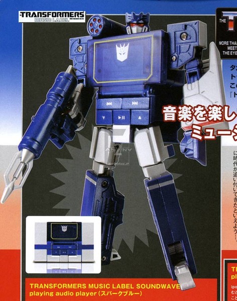 Some new pictures of Takara Tomy's Soundwave MP3 Player and Headphones have surfaced from Dengeki Hobby and Hobby Japan. The fully working Soundwave MP3 player comes in white and traditional blue, stands about 3/4 of the height of the original Soundwave . Frenzy and Rumble are also available for purchase separately. More pictures after the cut. Source: [Fan to Fan]