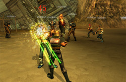 The closed-beta test will preview four occupations that players can choose for their characters: Hokuto-Monkasei (North Star Disciple), Nanto.-Monkasei (South Star Disciple), Rogue, and Street Performer. Player can fight other characters by using the keyboard buttons to punch, kick, or guard, and the mouse to direct actions. To stay faithful to the story setting, there will be no in-game money system — instead, players barter for items at shops or with other characters.