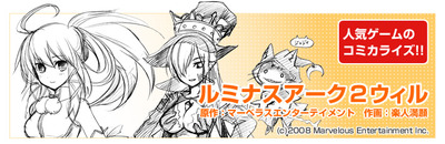 Fujimi Shobo's Comic Dragon Age magazine has launched a manga adaptation for the Luminous Arc 2 Will strategic simulation/role-playing game in its June issue, which went on sale on May 9 in Japan. Marvelous Interactive will ship the game itself for the Japanese Nintendo DS portable console on May 15, but no date has been announced for North America. Rakutomangan's manga and the game continue the storyline of the first Luminous Arc game that Atlus released in North America.