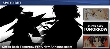 The North American distributor FUNimation Entertainment's website features darkened-out silhouettes of the Sara Werec and Emily characters (as well as the STRAIN RAM-DASS unit) from the Soukou no Strain anime. Funimation plans to make an announcement of a new title tomorrow. The silhouettes can be seen by clicking on the "CHECK BACK TOMORROW" icon on the website.