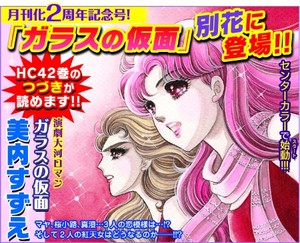 Manga artist Suzue Miuchi will relaunch her long-running Glass no Kamen (The Glass Mask) theatrical romance epic in Hakusensha's Bessatsu Hana to Yume magazine in its September issue (on sale on July 26). The manga had previously run in the main Hana to Yume magazine, but the 42nd and last compiled volume of the manga was published back in 2004. Bessatsu Hana to Yume's advertisement says that the story will pick up where volume 42 left off and will still feature the rising stage actress Maya Kitajima and her suitors Yū Sakurakōji and Masumi Hayami.