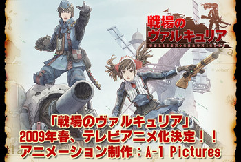 A television anime adaptation of Sega's Valkyria Chronicles (Senjō no Valkyria -Gallian Chronicles-) simulation role-playing game has been green-lit for production. The anime is scheduled for release in next spring. Sega's development unit that was formerly called Overworks (Sakura Wars) created the original game, which is set in the wartorn country of Gallia in a fictional version of 1930s Europe. Aniplex's A-1 Pictures anime studio (Ookiku Furikabutte, Persona -trinity soul-, Birdy the Mighty: Decode, Kuroshitsuji, Kannagi) is producing the project. The Sony PlayStation 3 game first shipped in Japan on April 24, and it just shipped in the United States on November 4.