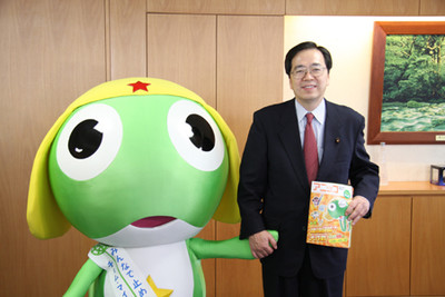 The blog of the fictional "Editor Watanabe" from Sgt. Frog's story describes Sgt. Frog's Tuesday visit with the Japanese Minister of the Environment, Tetsuo Saitō, to unveil the magazine.
