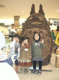 On November 29, a Japanese shopping center unveiled a 2.1-meter-tall (7-feet-tall) statue of the title character of Hayao Miyazaki's My Neighbor Totoro film — made of 10,000 pine cones. The Aeon Ayagawa Shopping Center is located the town of Ayagawa in the southwestern Japanese prefecture of Kagawa. The figure is part of a promotional event for the timber industry of Kagawa and the neighboring prefecture of Tokushima. The figure measures 3.6 meters (12 feet) around the waist and weighs 100 kilograms (220 pounds). It took 10 shopping center employees and volunteers two months to assemble the pine cones around the wire-and-bamboo frame.