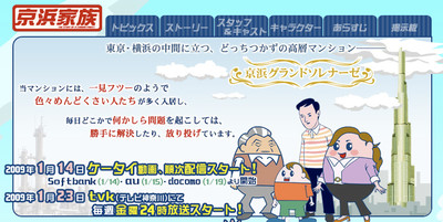 The veteran studio Toei Animation is collaborating with the creator Frogman of Kaeruotoko Shokai (Eagle Talon The Movie - The Chancellor Only Lives Twice, Pyu to Fuku! Jaguar ~Ima, Fuki ni Yukimasu~) on a Flash-animated mobile phone and television series called Keihin Kazoku (The Story of a Keihin Family). The animated shorts center around the Keihin Grand Sorenāze apartment complex's tenants, who are normal-looking at first glance, but cause all sorts of trouble every day. (Keihin is the Japanese term for the Tokyo/Yokohama area.)