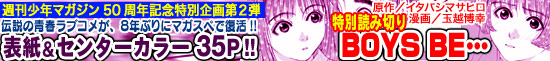 The same Magazine Special issue also announced that the Boys Be… manga will return in a special one-shot manga installment (pictured above) in the next issue on March 19. The "legendary romantic comedy for young men" will be on the next issue's cover and it will also have a color first page. The new manga episode is the second phase in the 50th anniversary celebration of Kodansha's Weekly Shōnen Magazine, which is where writer Masahiro Itabashi and artist Hiroyuki Tamakoshi created the original Boys Be… series. The original manga shipped over 18 million copies, spawned the Boys Be… 2nd Season and Boys Be...L Co-op spinoffs, and inspired anime and live-action drama versions.