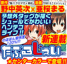 This year's 33rd issue of Kodansha's Weekly Shōnen Magazine has announced on Wednesday that Cromartie High School (Sakigake!! Cromartie Kōkō) creator Eiji Nonaka will launch a new manga called Double J (Daburu Jei) in the next issue on July 22. Nonaka created the manga's story while Maru Asakura (090 - Eko to Issho) is drawing the actual manga. The magazine's advertisement indicates that the two creators' surprising collaboration will depict the "surreal, cute, and strange life" of four girls, who Nonaka drew in animal character costumes (kigurumi).