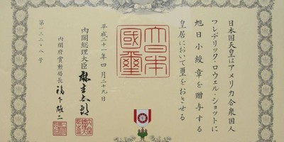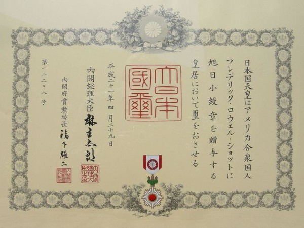 Manga translator and scholar Frederik L. Schodt received The Order of the Rising Sun, Gold Rays with Rosette (Kyokujitsu Jūkō Shō) award from the Japanese government in a June 26 ceremony. The award honors Schodt's contributions to the international spread of Japanese culture, particularly in his manga translations, his academic work, and his friendship with the late creator Osamu Tezuka. Schodt posted a draft of his acceptance speech on his personal website, and fellow manga translator Ryan Sands and Asian Art Museum staffer Jennifer Yin posted photographs and videos from the ceremony.