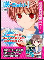 Another popular manga creator, Ritz Kobayashi, has resumed the Saki mahjong high school club manga in this year's 15th issue of Square Enix's Young Gangan magazine on Friday. Saki has been on hiatus since the 11th issue due to Kobayashi's sudden illness. The 15th issue marked the occasion by bundling an alternate cover for the manga's sixth compiled book volume.
