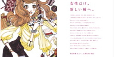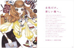Manga artist Moyoco Anno (Flowers and Bees, Happy Mania, Sugar Sugar Rune, Sakuran) has announced in a Thursday blog entry that she is returning to major drawing work again, after an 18-month hiatus due to her health. She illustrated a full-page "Girls Power" spread for Takarajimasha in the Thursday morning edition of the Mainichi Shimbun paper (pictured at right). Other than her Ochibi-san newspaper comic, it is her first major artwork since March of 2008. (She did contribute to Shu Uemura's Tokyo Kamon Girls makeup bottle designs earlier this summer.)