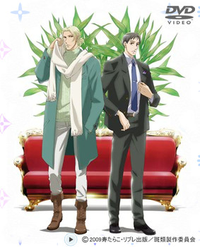 The official website for the original video animation (OVA) version of Tarako Kotobuki's Sex Pistols boys-love manga has posted new character designs and screenshots on Wednesday. The latest designs feature the characters Ōshō Aogiri and Hoikushi. The first of the anime's two DVD volumes will ship with a "Yoi Kono Madararui 1" video extra in Japan on March 26, followed by the second volume on June 25.
