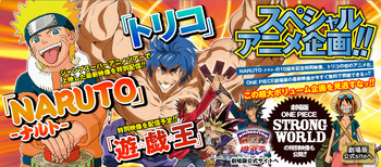 On Monday, the English website for Shueisha's Weekly Shonen Jump magazine has posted the Naruto and Toriko original anime shorts that were screened exclusively at the Jump Super Anime Tour events in Japan this past fall. (The videos require the website's proprietary browser software for the Microsoft Windows platform.) Weekly Shonen Jump's Japanese website also posted special footage that the Jump Super Anime Tour screened from next month's One Piece Film Strong World. The Japanese website promises to offer special footage from the 3D 10th Anniversary Yu-Gi-Oh! film, Gekijō-ban Yu-Gi-Oh! ~Chō-Yūgō! Jikū o Koeta Kizuna, in the near future.