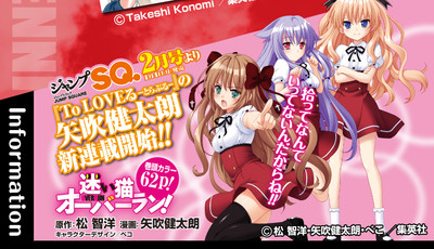 The website for the Circle K and Sunkus convenience stores in Japan has confirmed, via an unreleased image for a promotional campaign, that To Love-Ru -Trouble- manga artist Kentarō Yabuki is drawing the manga adaptation of Tomohiro Matsu's Mayoi Neko Overrun! (Stray Cats Overrun!) romantic comedy light novels.
