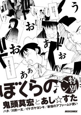 Kitoh ended the main Bokurano manga story after five years in Shogakukan's Monthly Ikki magazine this past June, but the magazine had announced that it would publish the "Bokurano Tokubetsu-hen" one-shot spinoff in July. The one-shot story is not related to the main manga storyline, but features the same characters in a "what-if" situation. However, Kitoh reported in two blog entries in July that Shogakukan would not publish the spinoff in either book or magazine form. Shogakukan has since decided to include the "Bokurano Tokubetsu-hen: Kitoh Mohiro to Ashi Star" spinoff in the last book volume's limited first edition.