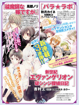 The March issue of Kadokawa Shoten's Asuka fantasy magazine has announced on Saturday that three manga series will launch in the next issue on February 24, including a new Evangelion manga. Takumi Yoshimura is drawing Shin Seiki Evangelion: Ikari Shinji Tantei Nikki (Neon Genesis Evangelion: Shinji Ikari's Detective Journal) in collaboration with Evangelion's anime studios Gainax and Khara. The comedy re-imagines Shinji Ikari, the main character of the Evangelion story, as a detective. Yoshimura previously drew the manga adaptation of Shū Miyazaki's Kami-sama Game light novels in Asuka.