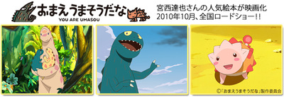 An animated film adaptation of Tatsuya Miyanishi's popular You Are Umasou (Omae Umasou Dana) picture book will open in Japan in October. The story centers around a Tyrannosaurus who comes across an Ankylosaurus baby all by himself and says, "Gaō! Omae Umasou Dana" ("Rawr! You look delicious.") However, the Tyrannosaurus ends up adopting the baby as his own.