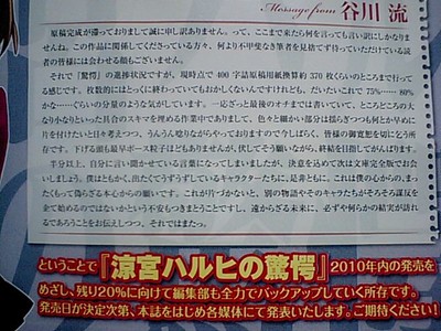 Haruhi Suzumiya's New Light Novel to Ship in 2010