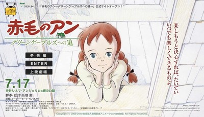 Anne of Green Gables: Road to Green Gables (Akage no Anne: Green Gables e no Michi), a compilation film of Nippon Animation and Isao Takahata's classic Anne of Green Gables (Akage no Anne) television anime series, will open in Japan on July 17. The official website is streaming a trailer. (In the linked page, select the "予告" button in the lefthand menu for the large version of trailer, or go to the trailer page for the small version.)