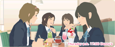 Not-So-Daily Link of the Day: The Denny's chain of family restaurants in Japan created a new section on its website to showcase its menu items for breakfasts, afterschool gatherings, and parties. For its "Afterschool Get-Togethers" scene, Denny's posted a picture of four girls with striking similarities to the Hōkago Teatime ("Afterschool Teatime") band in the K-ON! high school slice-of-life manga and anime franchise. Among the four afterschool menu items that Denny's highlights is creamy pearl milk tea.
