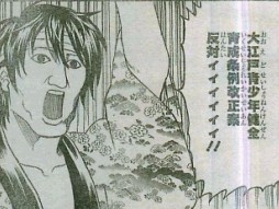 In this year's 26th issue of Shueisha's Weekly Shonen Jump magazine, creator Hideaki Sorachi referenced the controversy in Gintama, his manga set in an alternate-world Tokyo (Ōedo) that was invaded by aliens 150 years ago. In the installment published last Monday, a character (pictured above) yells, "I object to the Ōedo Youth Healthy Development Ordinance Revision Bill!" He adds later, "One should regulate their own heart before attempting to regulate free speech!! There were lolicon far back in the past before there was manga, the Internet, anime!! What's important is to have the heart to face those desires and control them instead of trying to put a lid on them!! Now let me just state that I'm not a lolicon, but instead a feminist."