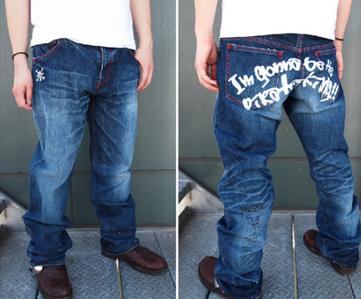 Not-So-Daily Link of the Day: The character apparel and goods retailer Cospa will offer Straw Hat Pirates Jeans from the One Piece anime series in Japan in late August. The main feature of the Okayama-made blue denim jeans is the "I'm gonna be the Pirate King!!" slogan printed on the buttocks in English. The figurehead on the bow of the pirates' Thousand Sunny ship adorns the buttons, and the right front pocket is imprinted with a straw-hat-wearing skull-and-crossbones logo. The jeans are stitched with red threads to reflect the signature color of the anime's main character Luffy. The bottom of the jeans' legs have even been pre-dripped with paint "as if you had just painted a pirate flag."