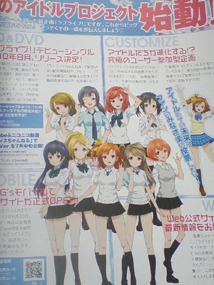 The August issue of ASCII Media Works' Dengeki G's Magazine is announcing on Wednesday that the Love Live! idol project is launching with a debut CD single and animation DVD in August.