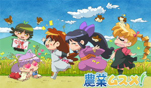Nōgyō Musume! is the first work in Toei and Mag Garden's collaborative "MG x TA Project." The "Episode 0" promotional anime, which runs about three minutes long, will be screened on display monitors at book stores and anime goods stores to promote the August 12 release of the first print volume. Hiroshi Ikehata, an episode director on Fullmetal Alchemist: Brotherhood and Hayate the Combat Butler, directed the short with character designs by Masakazu Sunagawa. Toei and Mag Garden also plan to stream the anime on the title's official website, and they will later run it in an October 7 special on the Animax channel on the CS satellite television service.