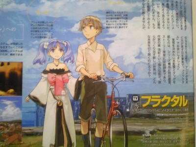 The September issue of Kadokawa Shoten's Newtype magazine is announcing next week that Kannagi and Haruhi Suzumiya's Yutaka Yamamoto (a.k.a. "Yamakan") is directing the Fractale television anime series for Fuji TV's late-night Noitamina timeslot. Also involved are otaku scholar Hiroki Azuma (as story developer) and series script supervisor Mari Okada (Kuroshitsuji, Toradora!). Mandelbrot Engine created the original story. The illustrator Hidari (Uso-tsuki Mii-kun to Kowareta Maa-chan light novel) is creating the original character designs.