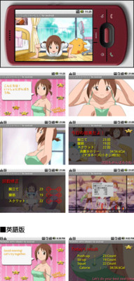 The app will attempt to synchronize Hinako's animation with the user's exercising through the phone's touch and accelerometer sensors. It will also count repetitions, estimate the calories burned, and graph your progress day-by-day. The app was developed for HVGA and WVGA (800x480-pixel and 854x480-pixel) displays.