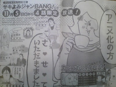 The November issue of Shueisha's Jump Square magazine is announcing on Monday that Jigoku no Misawa's Kakko-Kawaii Sengen! gag comedy manga is being adapted into four television anime shorts. The weekly shorts will run during Shueisha's Saki-yomi Jum-Bang! television program starting on November 5.