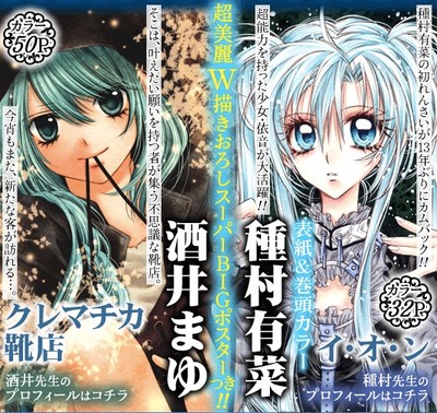 The second issue of Shueisha's Ribon Fantasy Zōkan-gō magazine will ship on October 22 with a new chapter of I.O.N., the first manga series that Arina Tanemura (Full Moon O Sagashite, The Gentlemen's Alliance Cross, Kamikaze Kaitō Jeanne) created. The manga follows Ion, a girl with telekinetic powers. The upcoming one-shot story is the first new I.O.N. chapter in 13 years. Tanemura is not only drawing the 32-page story with a color opening page, but also illustrating the magazine issue's cover.