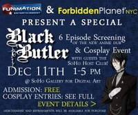 Funimation has also announced that it has partnered with Forbidden Planet and the SoHo Gallery for Digital Art to screen six episodes of the television anime Black Butler. The event is free, and also features a cosplay contest. Online pre-registration is available for the contest.