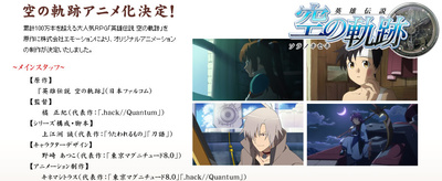 The Japanese game company Nihon Falcom has opened a website to announce on Wednesday that an original anime adaptation of its Eiyū Densetsu: Sora no Kiseki (The Legend of Heroes: Trails in the Sky) role-playing game franchise has been green-lit.