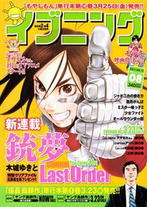 The same eighth issue of Evening features the return of Yukito Kishiro's Battle Angel Alita: Last Order (GUNNM: Last Order) manga. GUNNM: Last Order had been on hiatus after the 100th installment as the result of an issue between Kishiro and the manga's previous home, Shueisha's Ultra Jump magazine. Kishiro announced last August that he would move the manga to Kodansha.
