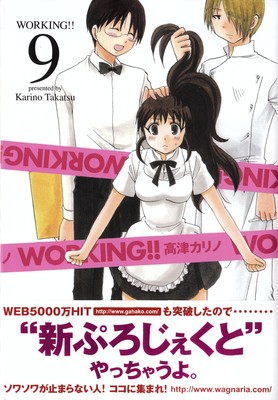 The wraparound jacket band on the ninth volume of Karino Takatsu's Working!! manga is announcing on Friday that Takatsu's website has received over 50 million hits, so she "is doing a 'new project.'" As of Friday, the official website for the television anime adaptation is also opening with a splash page with a large number "7." Neither the jacket band nor the two websites indicate the format that the new project will take. In the story, a high school freshman named Sōta Takanashi works part-time among a restaurant's high-spirited, eccentric, yet cool staffers.