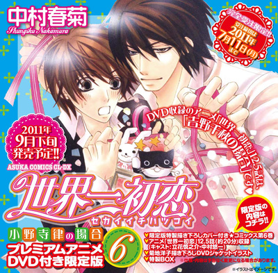 The Japanese publisher Kadokawa Shoten announced that the sixth limited edition volume of Shungiku Nakamura's Sekai-ichi Hatsukoi ~Onodera Ritsu no Baai~ boys-love manga will bundle an anime DVD with "episode 12.5" in late September. The manga already inspired an ongoing Sekai Ichi Hatsukoi television anime series and an earlier original anime DVD that came with the fifth manga volume.
