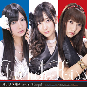 "Kakko Warui I Love You!" — the opening theme song for the ongoing Sket Dance anime by the Japanese idol trio French Kiss, debuted at #2 on Oricon's CD singles sales chart for the May 9-15 week. The trio's third single sold 113,000 copies (rounded to the nearest thousand). French Kiss is a spinoff unit of the larger all-female idol group AKB48 with Asuka Kuramochi, Yuki Kashiwagi, and Aki Takajo.